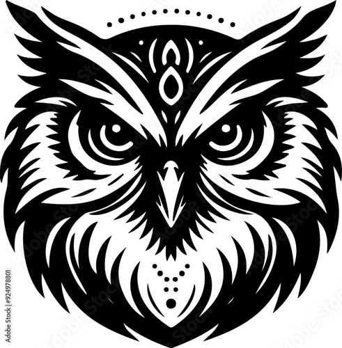 © Arfin, Fototapeta premium Majestic Owl heads black and white vector silhouette illustration 17