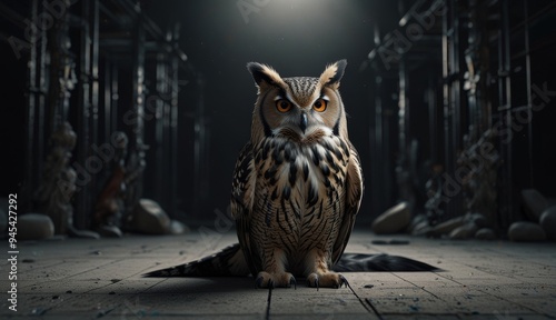 © Василь Тігай, Obraz premium Majestic Owl in Enigmatic Setting