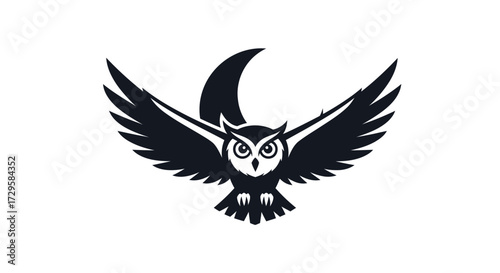 © Tawang, Fototapeta premium Majestic Owl in Flight with Crescent Moon.