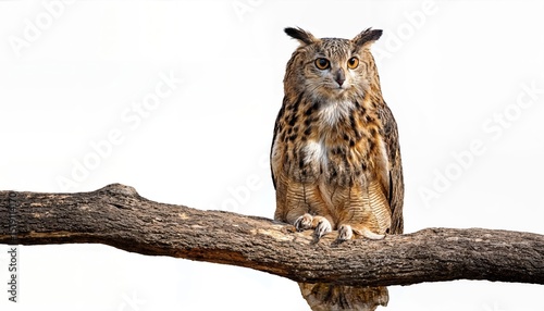 Obraz premium Majestic Owl Perched on a Branch Against Transparent Backdrop at Twilight,...
