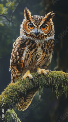Fototapeta premium Majestic Owl Perched on Mossy Branch