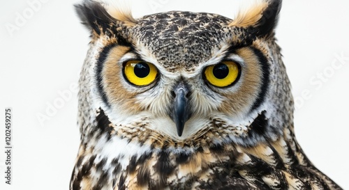 © Alexandr, Fototapeta premium Majestic owl with striking yellow eyes and intricate feather patterns