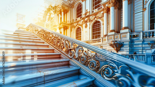 © Jahid, Obraz premium Majestic palace bathed in golden light, its historical grandeur inviting visitors to explore the depths of art and culture