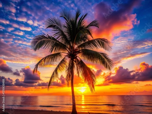 © Four888, Obraz premium Majestic Palm Silhouette at Sunset: Rule of Thirds Composition