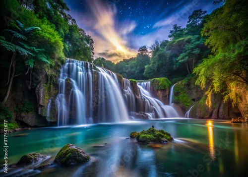 © Adisorn, Fototapeta premium Majestic Pangas Falls, Bohol, Philippines: Nighttime Low Light Photography