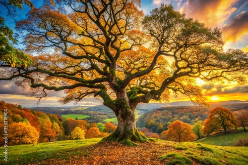 © Arnada, Fototapeta premium Majestic Panoramic View of Ancient English Oak Tree in Autumn