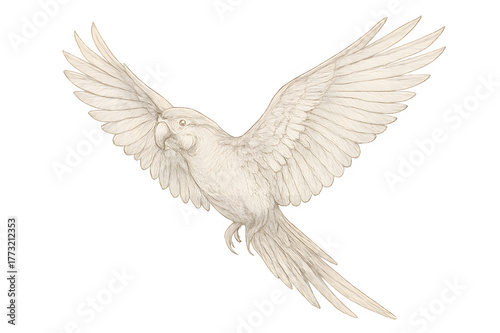 Naklejka premium Majestic parrot in elegant flight soars, a symbol of freedom and grace perfect for designs needing a touch of the wild, artistic flair, and natural beauty.