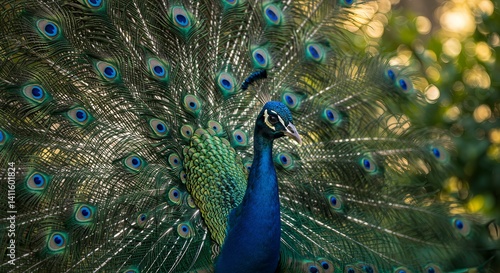 Obraz premium Majestic Peacock: Vibrant Plumage, Serene Display, Nature's Masterpiece