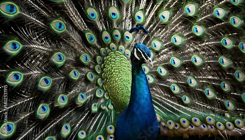 © Liang, Fototapeta premium Majestic Peacock with Full Tail Feathers Display