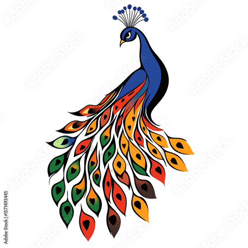 Obraz premium Majestic Peacock with Vibrant Plumage: A Stunning Artistic Illustration
