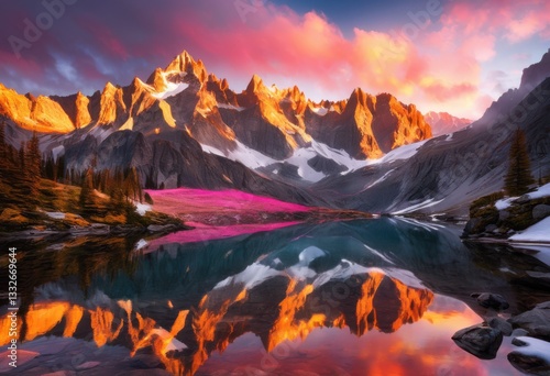 Obraz premium majestic peaks illuminated vibrant sunrise colors creating breathtaking...