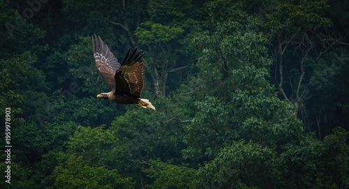 Fototapeta premium Majestic Philippine Eagle soaring in dense forest habitat