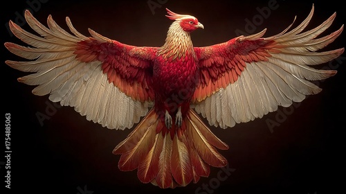 Obraz premium Majestic Phoenix Spreading Wings with Vibrant Red and Gold Feathers