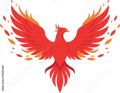 Fototapeta premium Majestic phoenix with vibrant red and orange feathers in flat vector art style