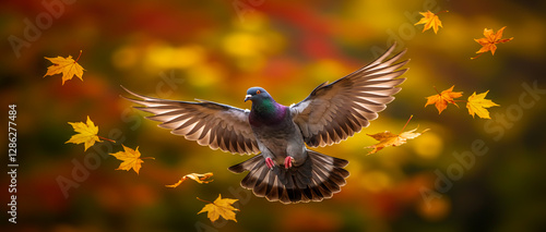 Obraz premium Majestic Pigeon Soaring with Fully Extended Wings