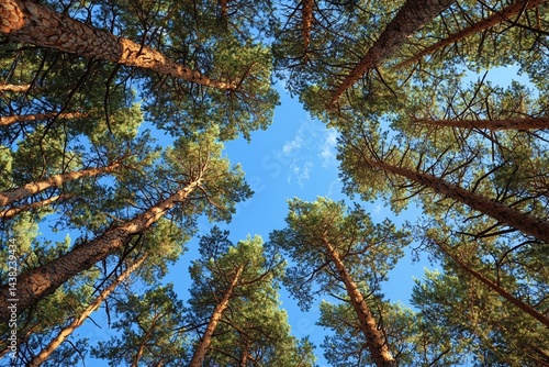 © Boonyawadee.K, Obraz premium Majestic Pine Forest Canopies Reaching for a Sunny Sky