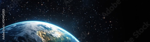 Fototapeta premium Majestic Planet Earth Viewed from Space with Distant Stars and Copy Space for Text Overlay