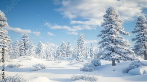 © Giovanni, Fototapeta premium Majestic Ponderosa pines blanketed in a swirling snow blizzard capturing the serene beauty of a winter landscape