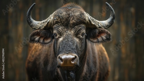 © Bijac, Naklejka premium majestic portrait of a buffalo in a farm setting powerful animal rural
