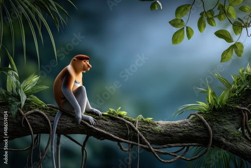 Fototapeta premium Majestic primate resting on a branch in a lush jungle surrounded by vibrant...