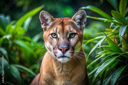 Fototapeta premium Majestic Puma in Natural Habitat Showcasing Grace and Power Amidst Lush...