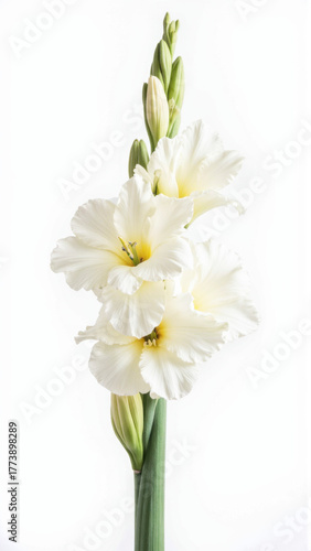 Fototapeta premium Majestic Purple Gladiolus Flower Spike Isolated on a White Background