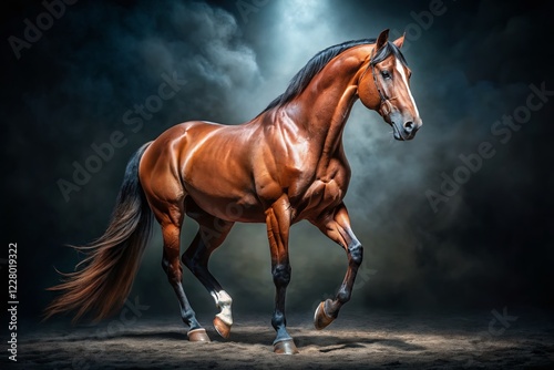 © Four888, Obraz premium Majestic Quarter Horse Posing in Low Light, Dramatic Equestrian Photography