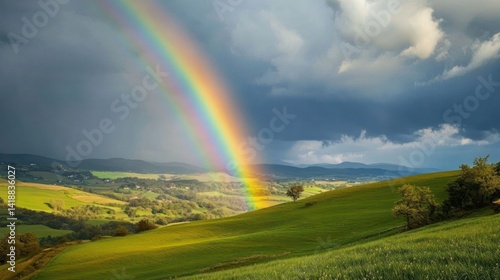 Naklejka premium Majestic Rainbow Arcing Over Rolling Green Hills