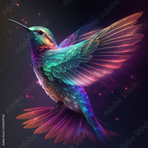 Obraz premium Majestic Rainbow Bird Soaring Through Space