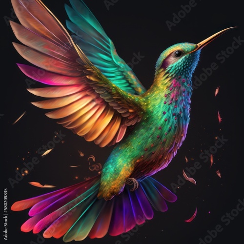 © Jardel Bassi, Obraz premium Majestic Rainbow Bird Soaring Through Space
