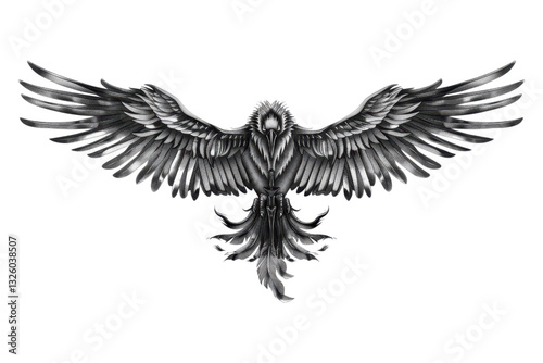 © Nikola Step, Obraz premium Majestic Raven in Flight - Powerful Graphic Design