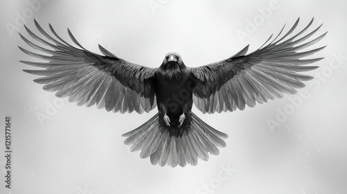 Naklejka premium Majestic Raven Soaring With Wings Spread Wide