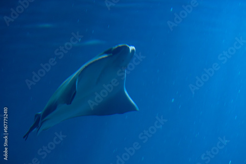 © Krzysztof, Fototapeta premium Majestic Ray Gliding Through Sunlit Blue Water