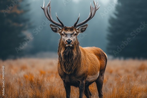 © Alienmarsh, Obraz premium Majestic Red Deer Buck in the Wild