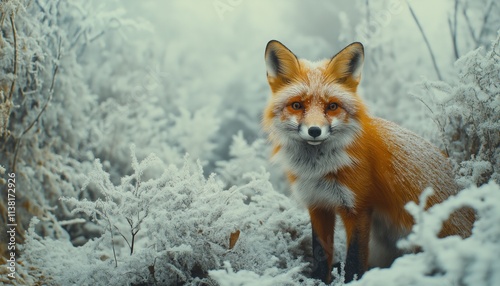 Fototapeta premium Majestic Red Fox in a Frosty Winter Wonderland: A Captivating Portrait of...
