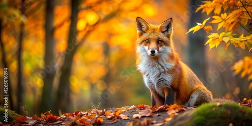 © prapatsorn, Obraz premium Majestic Red Fox in a Panoramic Autumn Landscape - Wildlife Photography