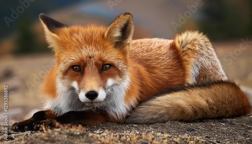 Fototapeta premium Majestic Red Fox Lounging in Forest Undergrowth, Gorgeous Fur Coat...