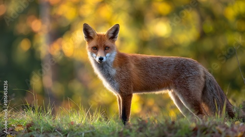 © decorator, Obraz premium Majestic red fox portrait bathed in golden light a stunning wildlife scene of autumn beauty