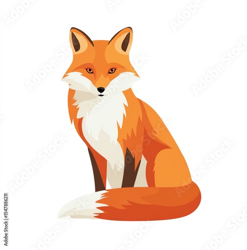 © Priyanut, Obraz premium Majestic Red Fox Sitting Against White Background,Alert and Calm