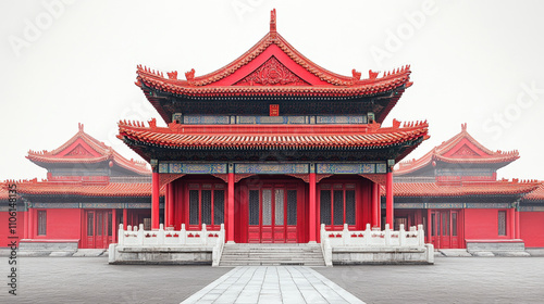 Fototapeta premium majestic red palace showcases traditional Chinese architecture with intricate details and vibrant colors, evoking sense of history and culture