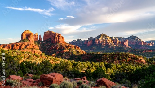 Fototapeta premium Majestic red rock formations of Sedona bathed in the warm glow of early morning light