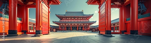 © Creative_Bringer, Fototapeta premium Majestic red temple gate, traditional architecture, clear sky