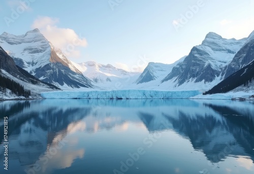 Fototapeta premium Majestic Reflection of Snow-Capped Ranges in Crystal-Clear Lake Surface...