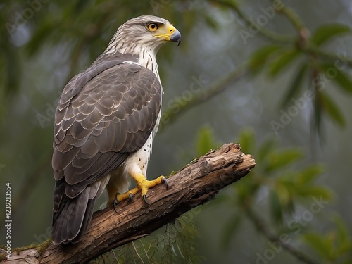 © Jzef, Fototapeta premium Majestic Rested Goshawk Buzzard Perched in Tree Close Up Wildlife Photography