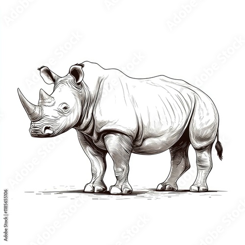 Fototapeta premium Majestic Rhino: A Detailed Line Drawing of a Powerful Creature