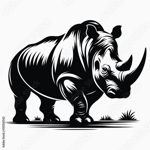 © Imtiaz, Obraz premium Majestic Rhino Silhouette Vector – Strong and Bold Wildlife Design
