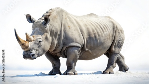 © Manatsavee, Fototapeta premium Majestic Rhino Trekking Through Pristine Winter Snowscape