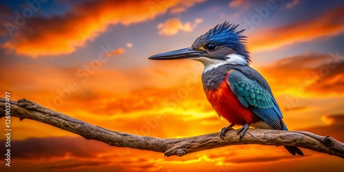 © Danicha, Fototapeta premium Majestic Ringed Kingfisher Silhouette at Sunset - Bird Silhouette Photography