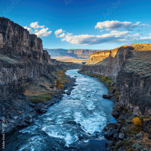 © Fenny, Fototapeta premium Majestic river flowing through a canyon under a vibrant sky.