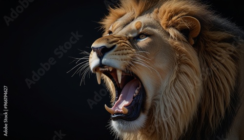 © Василь Тігай, Fototapeta premium Majestic Roaring Lion Portrait